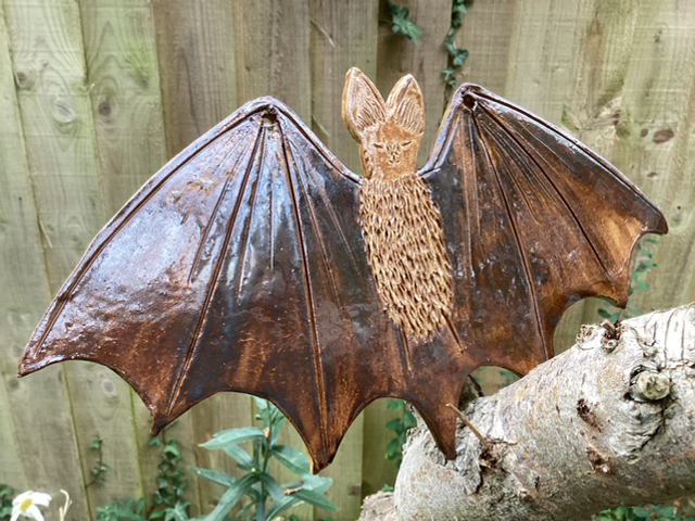 Crafted from buff stoneware with brown glazes and iron oxide, each bat has its own unique face. Hang it in your home for spooky season, or use it as a decorative accent all year round. A must-have for any bat lover! A percentage of profits from all bat ceramic products are donated to the Bat Conservation Trust. Measuring approximately 27cm x 15cm.