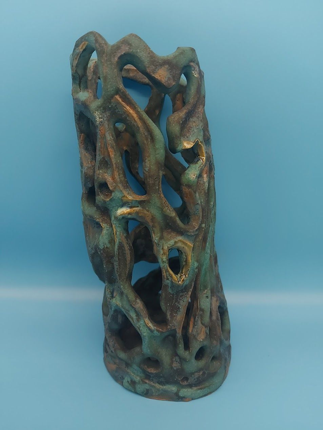 This vase is made from buff earthenware stoneware clay and glazed with a reactive stoneware glaze.